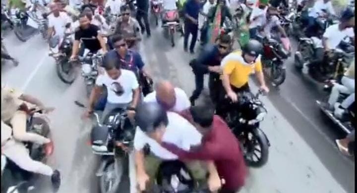 पूर्णिया में रोड शो के दौरान एक अनोखा वाकया भी देखने को मिला. बुलेट पर बैठे राहुल गांधी के सामने अचानक उनका एक प्रशंसक आ गया और उनसे लिपट गया. इसके बाद राहुल की सुरक्षा में तैनात गार्ड ने उस युवक को साइड कर दिया. इस घटना को राहुल गांधी की सुरक्षा में बड़ी चूक मानी जा रही है.