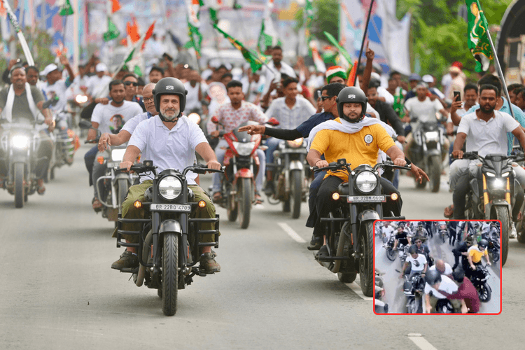 पूर्णिया में रोड शो के दौरान एक अनोखा वाकया भी देखने को मिला. बुलेट पर बैठे राहुल गांधी के सामने अचानक उनका एक प्रशंसक आ गया और उनसे लिपट गया. इसके बाद राहुल की सुरक्षा में तैनात गार्ड ने उस युवक को साइड कर दिया. इस घटना को राहुल गांधी की सुरक्षा में बड़ी चूक मानी जा रही है.