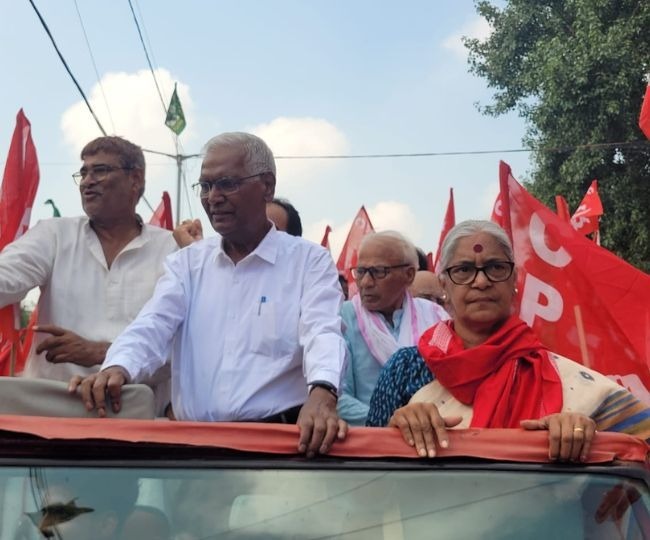 वोटर अधिकार मार्च में शामिल हुए CPI के महासचिव डी राजा समेत सीपीआई कार्यकर्ता
