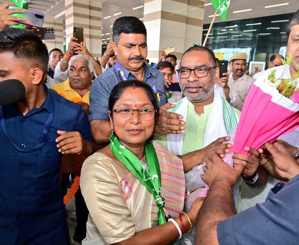 Voter Adhikar Yatra Live: पटना एयरपोर्ट पर पहुंचते ही सीएम का जोरदार स्वागत हुआ. JMM कार्यकर्ताओं ने सीएम को माला पहनाकर और बुके देकर स्वागत किया. इस दौरान एयरपोर्ट पर बड़ी संख्या में झामुमो कार्यकर्त्ता पार्टी का झंडा लिए नजर आये.