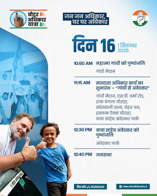 Bihar Voter Adhikar Yatra: कांग्रेस की तरफ से जारी आज की यात्रा का शेड्यूल
