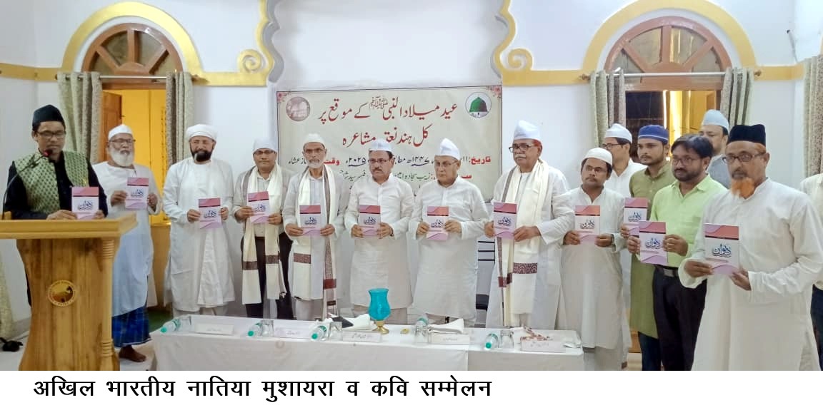 पटना सिटी. उठाओ हाथों में जब क़लम तुम, दरूद लिख दो सलाम लिख दो, शंकर कैमुरी और नबी पे पहले दरूद व सलाम होता है,फिर उसके बाद ही रौशन कलाम होता है, अमीन रहबर शायरी करते हुए यह बात कही, तो श्रोता मंत्र मुग्ध हो गये. मौका था सुल्तानगंज स्थित खानकाह हज़रत दीवान शाह अरज़ानी में ईद-उल-मिलादुन्नबी पर अखिल भारतीय नातिया मुशायरा व कवि सम्मेलन का. खानाकाह के सज्जादानशीं प्रो़ सैयद शाह हसीन अहमद की सरपरस्ती में हुए मुशायरा व कवि सम्मेलन में दीवान अंक का विमोचन भी किया गया. सम्मेलन की अध्यक्षता प्रो ज़ैन रमेश और पत्रकार डॉ. रेहान गनी ने की. इसका उद्घाटन संपादक सैयद अशरफ फरीद ने की. इसके बाद प्रो डॉ. शहाब जफर आजमी ने नातिया कलाम पेश कर आरंभ किया. आयोजन में सासाराम के तनवीर अख्तर, मुजफ्फरपुर के सईद कादरी, गुलाम रब्बानी अदील, ओडिशा राउलकेला के मुख्तार राही, डाल्टेनगंज, झारखंड डॉ. अतहर मुबीन कुरैशी, सलमान सिद्दीकी, मशकूर मोईनी, हसन इमाम रिज़वी, डॉ. एजाज़ रसूल, ज़फ़र सिद्दीकी, अमीन रहबर, जमाल काकवी, मोईन गिरडवी, डाॅ नसर आलम नसर, अज़हर रसुल, शंकर कैमुरी, अहसन राशिद, वक़ी मंज़र, डा ज़ाहीद सिवानी, असर फ़रीदी, जमाल काकवी, परवेज़ आलम, ताबिश इमाम, सज्जाद वारसी समेत अन्य शायरों ने अपनी प्रस्तुति से मंत्र मुग्ध किया. संचालन डॉ. ज़ाहिद सिवानी व धन्यवाद ज्ञापन डॉ सैयद हुमायूं अख्तर ने किया.
