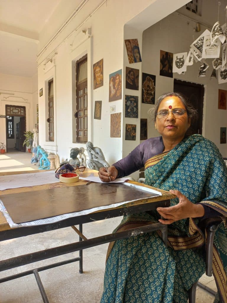 मैं 1989 से 1993 तक कला एवं शिल्प महाविद्यालय में स्नातक की छात्रा रही. उस समय महाविद्यालय में स्नातकोत्तर की कोई व्यवस्था नहीं थी, इसलिए मैंने मध्य प्रदेश (वर्तमान में छत्तीसगढ़) में स्नातकोत्तर और पीएचडी की पढ़ाई की. कुछ समय तक भारत भवन, भोपाल में भी कार्य किया और 2004 से 2012 तक कला एवं शिल्प महाविद्यालय में अस्थाई शिक्षिका के रूप में भी काम किया. पिछले कुछ महीनों से प्राचार्या के पद पर हूं.