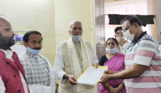 पटना : पूर्व केंद्रीय मंत्री यशवंत सिन्हा बिहार में बाढ़ को लेकर यूनाइटेड डेमोक्रेटिक एलायन्स के सहयोगी नेताओं के साथ मंगलवार को बिहार के राज्यपाल फागु चौहान को ज्ञापन देने पहुंचे. हालांकि, यशवंत सिन्हा से राज्यपाल नहीं मिलें. राज्यपाल के सचिव को ज्ञापन सौंपा गया. इस दौरान पूर्व केंद्रीय मंत्री यशवंत सिन्हा ने बिहार सरकार पर जमकर निशाना साधा.