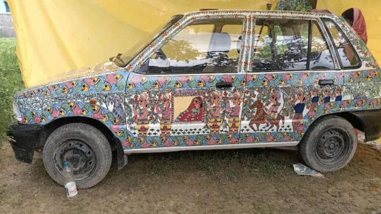 खुशबू और उनकी टीम ने बनाई कार पर मधुबनी पेंटिंग
