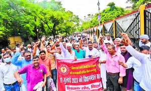 पटना. बिना परीक्षा लिये राज्यकर्मी का दर्जा देने की मांग को लेकर मंगलवार को हजारों नियोजित शिक्षक सड़क पर उतर आये और गांधी मैदान के जेपी गोलंबर से बिहार विधानसभा का घेराव करने के लिए मार्च किया. हालांकि, पहले से ही बड़ी संख्या में मौजूद पुलिसकर्मियों ने प्रदर्शनकारियों को जेपी गोलंबर से आगे फ्रेजर रोड की ओर नहीं बढ़ने दिया. इसके बाद प्रदर्शनकारी सीधे आर ब्लॉक पहुंच गये और विधानसभा की ओर बढ़ने का प्रयास किया.