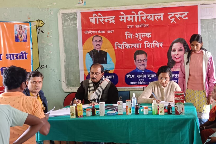 बीरेंद्र मेमोरियल ट्रस्ट के शिविर में की गयी मरीजों की मुफ्त जांच