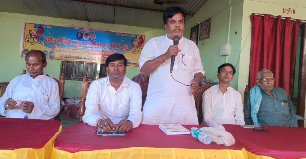 भवानीपुर. प्रखंड मुख्यालय स्थित शहीद बालकिशोर मंडल के आवास पर बुधवार को शहजाद की अध्यक्षता में एआइवाइएफ का आठवां जिला सम्मेलन बुधवार को संपन्न हुआ. एआइवाइएफ के राज्य अध्यक्ष संजीत सुमन ने कहा कि यह एक युवा संगठन है जिसने देश की आजादी की लड़ाई लड़ी. शहादत और कुर्बानी दी. आज युवाओं के हक की लड़ाई लड़ कर रहे हैं. सरकार युवा और जनविरोधी है. युवाओं को रोजगार या 10000 मासिक भत्ता समेत कई मांगों की चर्चा की. 21 सदस्यीय जिला परिषद का गठन किया. कुंदन कुमार को जिला अध्यक्ष, मोहम्मद सज्जाद को जिला सचिव, निकेश कुमार को सहायक सचिव, अभिषेक कुमार एवं पंकज पंडित को उपाध्यक्ष के पद पर मनोनीत किया गया. मौके पर भाकपा रुपौली विधानसभा के प्रत्याशी रहे विकास चंद्र मंडल, सुभाष चंद्र यादव, जिला सचिव सत्यदेव ठाकुर आदि कार्यकर्ता सम्मेलन में शामिल थे.