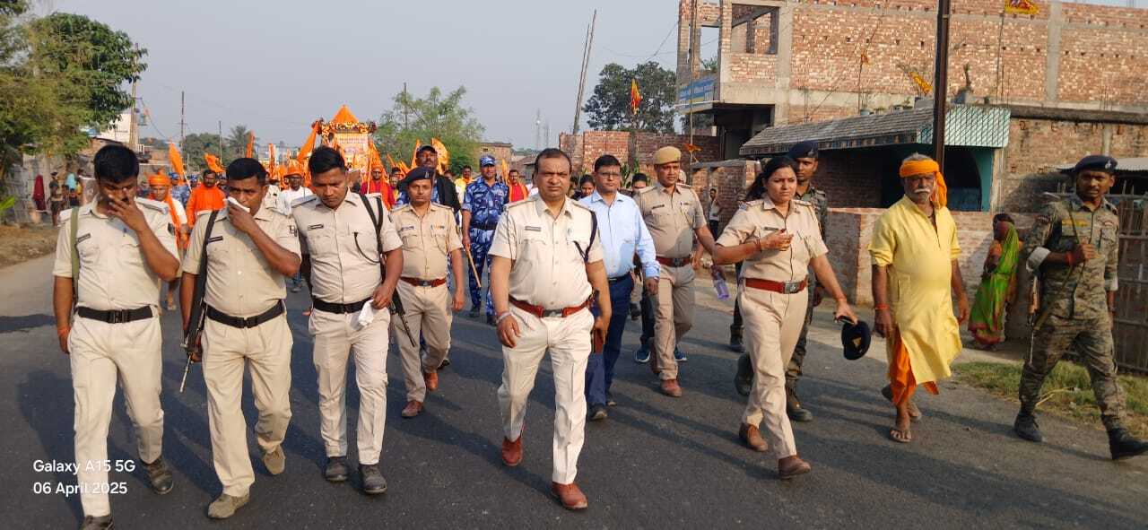 प्रतिनिधि ,जानकीनगर . श्रीराम के जन्मोत्सव पर विहिप बजरंग दल कार्यकर्ताओं ने जानकीनगर में भव्य रामनवमी शोभायात्रा निकाली . जानकीनगर कपिलेश्वर शिव मंदिर परिसर से रामनवमी शोभा यात्रा निकाल कर पूरे नगर पंचायत का भ्रमण किया. विहिप बजरंग दल के कार्यकर्ताओं के साथ साथ क्षेत्र के सैकड़ों युवाओं ने उत्साहपूर्वक शोभायात्रा में भाग लिया. शोभायात्रा में बनमनखी विधायक कृष्ण कुमार ऋषि,नगर पंचायत जानकीनगर के मुख्य पार्षद रमेश पासवान, उपमुख्य पार्षद सुनील कुमार रजक, वार्ड पार्षद प्रतिनिधि राजीव भगत, अभिषेक आनंद सहित सैकड़ों श्रद्धालुओं ने भाग लिया. कार्यपालक पदाधिकारी आलोक शंकर, जानकीनगर थानाध्यक्ष परीक्षित पासवान, रूपेश्वरी ओपी अध्यक्ष सुष्मिता कुमारी, चकमका ओपी अध्यक्ष प्रिंस कुमार मौजूद रहे.