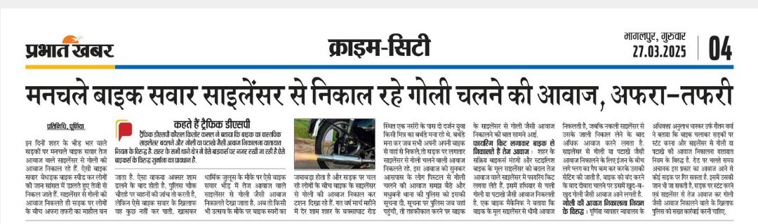 बाइक के साइलेंसर से आवाज निकालने वालों के विरुद्ध होगी कड़ी कार्रवाई