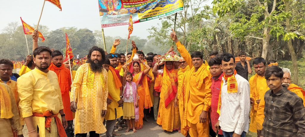 प्याजी गांव में कलश शोभायात्रा के साथ अखण्ड महाविष्णु यज्ञ प्रारंभ