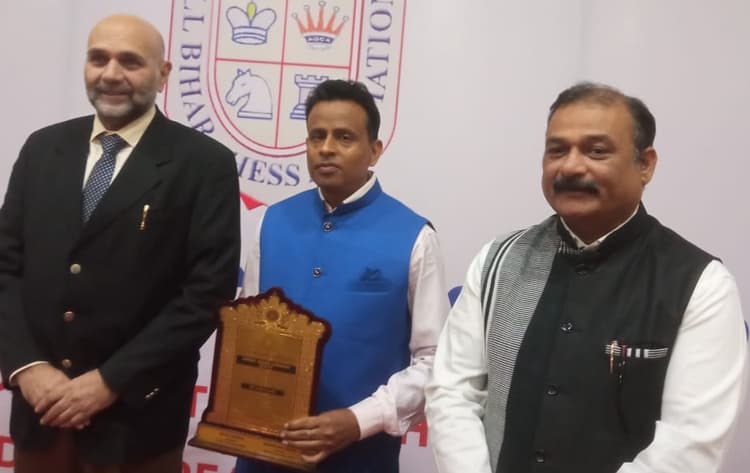 पूर्णिया. अखिल बिहार शतरंज संघ के बैनर तले संघ के सचिव धर्मेंद्र कुमार के नेतृत्व में गया जिला के संबोधि रिट्रीट में आयोजित वार्षिक शतरंज सम्मान समारोह में पूर्णिया शतरंज में विगत चार सालों से धमाल मचाने वाले जीएम शतरंज क्लब के संस्थापक सचिव सह अंतरराष्ट्रीय रेटेड शतरंज खिलाड़ी अमृत साजन को सम्मानित किया गया. यह सम्मान उन्हें महाराष्ट्र निवासी भारत के तीसरे ग्रैंडमास्टर व अर्जुन अवार्ड से सम्मानित प्रवीण थिप्से व सचिव धर्मेंद्र कुमार द्वारा दिया गया. अमृत साजन ने बिहार के शतरंज मित्रों से कहा कि पूर्णिया डीएम कुंदन कुमार व जिला खेल पदाधिकारी डेजी रानी का शतरंज खेल को प्रोत्साहित करने व जिला में शतरंज के विकास करने को लेकर भरपूर सहयोग मिल रहा है. नशा मुक्त भारत शतरंज अकादमी के संस्थापक सचिव प्रेम कुमार यशवंत ने कहा कि अमृत साजन को मिले यह सम्मान से पूरे बिहार में पूर्णिया जिला का मान बढ़ा है. बधाई देने वालों में नशा मुक्त भारत के संस्थापक सह राष्ट्रीय अध्यक्ष प्रेम कुमार यशवंत, स्वाति अग्रवाल व शतरंज खिलाड़ियों के दर्जनों अभिभावकगण व बिहार के शतरंज प्रेमी शामिल हैं. फोटो.31 पूर्णिया 2- समारोह में सम्मानित होते अमृत साजन.