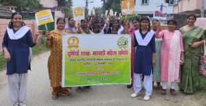 पूर्णिया. अखिल भारतीय मारवाड़ी महिला समिति पूर्णिया शाखा की महिलाओं ने अंगदान दिवस पर भट्ठा दुर्गाबाड़ी कन्या उच्च विद्यालय की छात्राओं के साथ अंगदान जागरूकता रैली निकाली. इस दौरान जगह-जगह पोस्टर चिपकाए गये. वहीं छात्राओं के बीच बुकमार्क वितरण कर अंगदान के बारे में छात्राओं को बताया गया. मौके पर शाखा की अध्यक्ष सरिता अग्रवाल ने बताया कि इसके पहले भी अखिल भारतीय मारवाड़ी महिला समिति पूर्णिया शाखा की बहनों ने स्वर्गीय लक्ष्मी नारायण का नेत्रदान उनके पुत्र श्याम सुल्तानिया एवं उषा सुल्तानिया व पूरे परिवार के सहयोग से करवाया था. शाखा की अध्यक्ष ने बताया कि यह अभियान वे पिछले बारह साल से चला रही हैं. इससे अब लोग इसके प्रति धीरे-धीरे जागरूक भी हो रहे हैं. उन्होंने बताया कि शाखा का मकसद लोगों को जागरूक करना है. ताकि लोग समय पर अंगदान कर सके. इस मौके पर नीतू मोदी, निक्की अग्रवाल, कोषाध्यक्ष बबीता डोकानिया, मीना शारडा, उमा केजरीवाल, पूनम पंसारी, शारदा अग्रवाल, पूनम अग्रवाल आदि रैली में शामिल थी. फोटो;17 पूर्णिया 3- रैली में शामिल मारवाड़ी महिला समिति की महिलाएं एवं अन्य