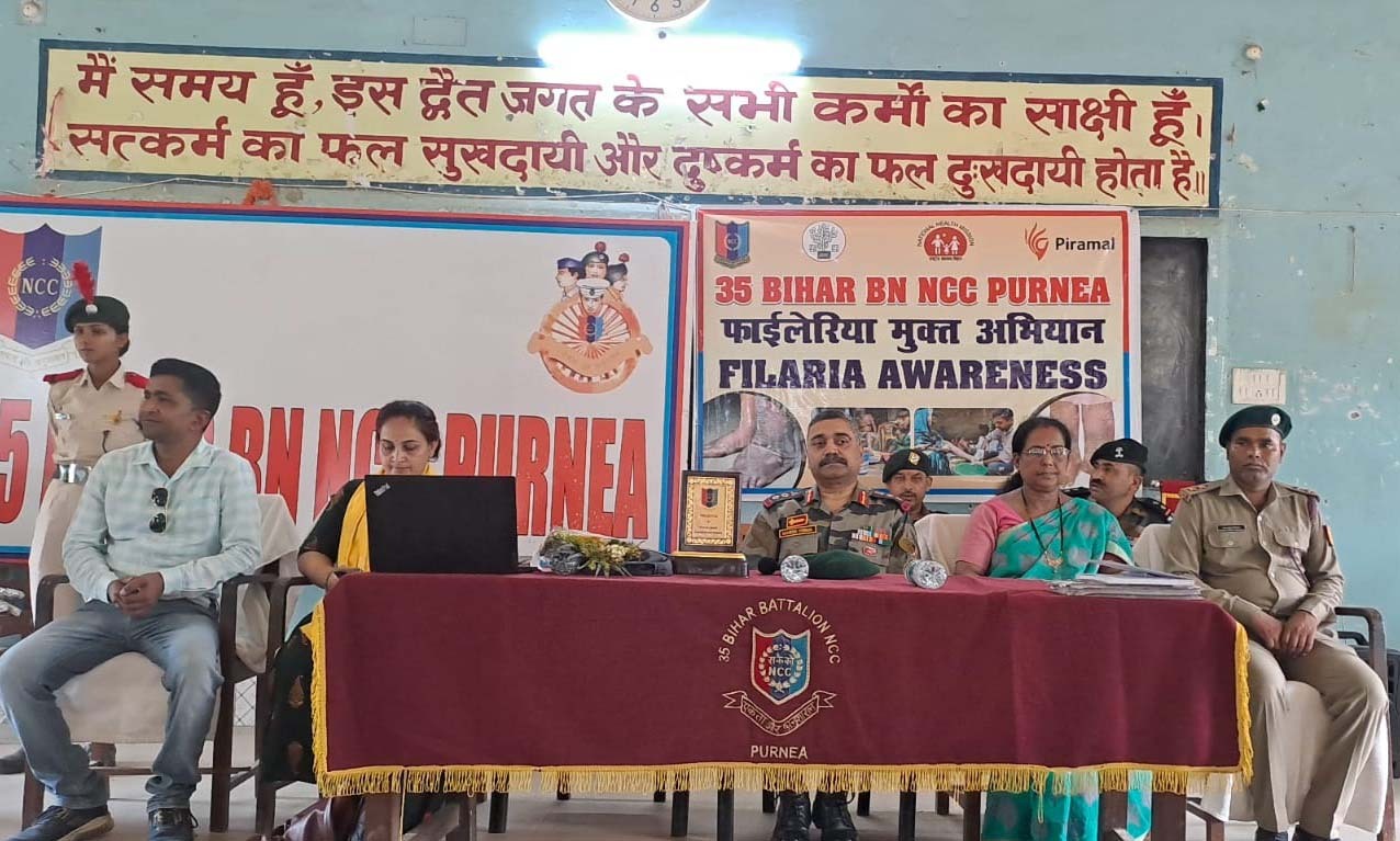 पूर्णिया. जिला स्कूल में एनसीसी कैडेटों द्वारा फायलेरिया उन्मूलन दिवस के अवसर पर विविध कार्यक्रमों का आयोजन किया गया. कार्यक्रम की शुरुआत 35 बिहार बटालियन के कमांडिंग ऑफिसर कर्नल मनीष वर्मा को गार्ड ऑफ ऑनर देकर किया गया. कार्यक्रम में उपस्थित पदाधिकारी एवं अतिथियों को बुके देकर देकर स्वागत किया गया. इस अवसर पर कर्नल मनीष वर्मा, रसलदार प्रेम सिंह राठौड़, सूबेदार मदनलाल, हवलदार अजय कुमार, मुकेश कुमार, एनसीसी ऑफिसर पवन कुमार विश्वास, डॉक्टर चंदन कुमार, अवधेश कुमार, प्रचार्य सीमा राय आदि ने अपनी-अपनी बातें रखी. कटिहार, पूर्णिया कॉलेज पूर्णिया, के बी झा कॉलेज कटिहार, बीबीएम हाई स्कूल, विद्या विहार स्कूल, डीएवी पब्लिक स्कूल आदि के लगभग 200 एनसीसी कैडेट इसमें शामिल हुए. वक्ताओं ने बीमारी होने के कारण पर प्रकाश डाला और फायलेरिया के दुष्परिणामों पर चर्चा की. साथ ही इससे बचने के उपाय भी बताये गये. सरकार द्वारा फायलेरिया उन्मूलन के लिए चलाये जाने वाले कार्यक्रमों की जानकारी दी गयी. दवाइयों से संबंधित विस्तृत जानकारी भी दी गयी. उपस्थित क्रेडिट एवं विंगस को बताया गया कि हम सभी अपने-अपने आसपास के नागरिकों में फायलेरिया के प्रति जागरूकता लायें. नागरिकों के बीच रैली निकलकर कार्यक्रम समापन किया गया. फोटो. 25 पूर्णिया 11- कार्यक्रम में उपस्थित पदाधिकारी एवं अन्य.