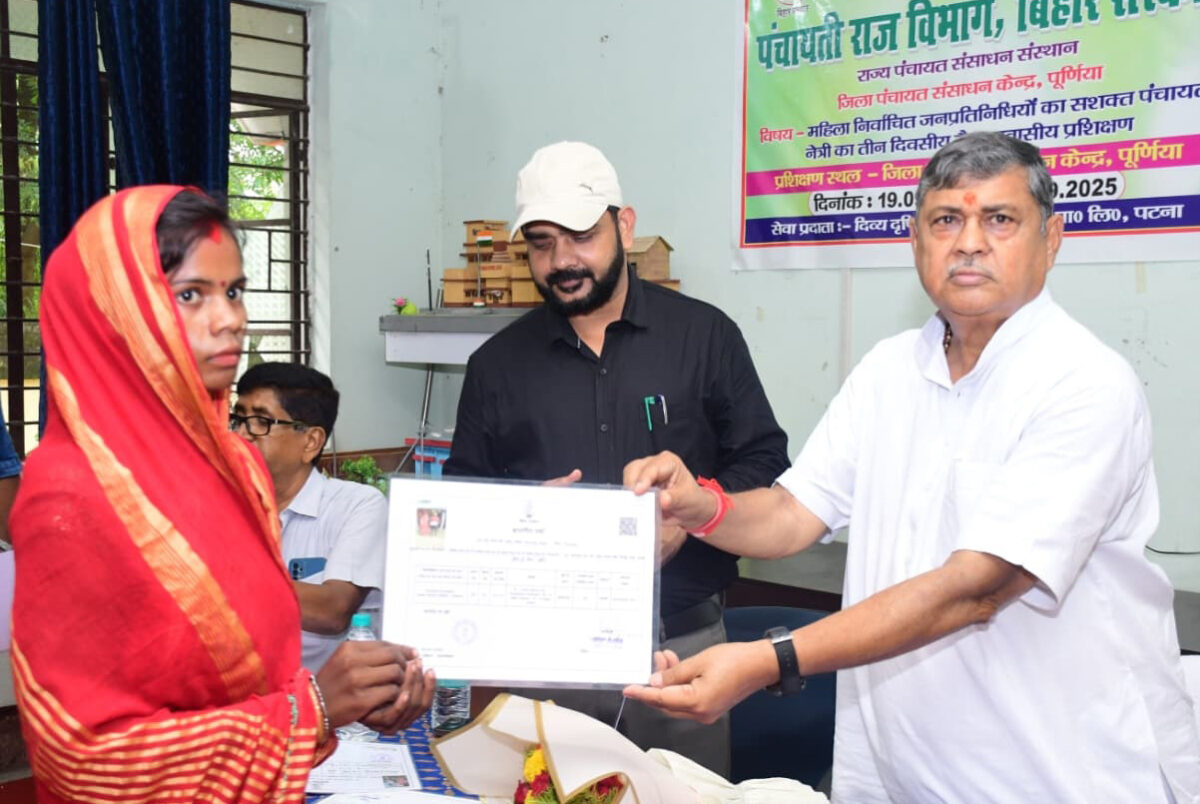 पूर्णिया. पूर्णिया ईस्ट ब्लॉक अंचल कार्यालय के प्रांगण में भूमिहीन परिवार को बसेरा 2 के अंतर्गत आयोजित सरकारी कार्यक्रम में विधायक विजय खेमका ने भूमिहीन उनसठ परिवारों को बासगीत पर्चा वितरण किया. पूर्व में 51 परिवार को बासगीत पर्चा वितरित किया जा चुका है. कार्यक्रम के दौरान विधायक ने पांच बुजुर्ग महिलाओं को अंगवस्त्र देकर सम्मानित भी किया. उन्होंने कहा कि एनडीए की सरकार गरीबों की सरकार है. प्रधानमंत्री नरेंद्र मोदी और मुख्यमंत्री नीतीश कुमार की डबल इंजन सरकार में हर परिवार को सरकारी योजना का लाभ मिल रहा है. विधायक ने कहा सड़क, बिजली, पानी, शिक्षा और स्वास्थ्य के क्षेत्र में अमूल-चूल परिवर्तन हुआ है. हर घर में बिजली पहुंची है, मुफ्त राशन मिल रहा है.रहने के लिए प्रधानमंत्री आवास योजना से मकान दिया जा रहा है. नल जल योजना से मुफ्त पानी मिल रहा है. स्कूली बच्चों को मुफ्त किताबें, पोशाक, योवाओ को रोजगार भत्ता ,साइकिल, छात्रवृत्ति और उच्च शिक्षा के लिए ब्याजमुक्त ऋण की सुविधा मिल रही है. महिला सशक्तिकरण की चर्चा करते हुए विधायक ने कहा कि आज महिलाएं आत्मनिर्भर बन रही हैं. जीविका दीदी लखपति दीदी बन रही है और महिला उद्यमी योजना के तहत उनके खाते में 10,000 की राशि भेजी जा रही है. राजस्व विभाग की उपलब्धियों की चर्चा करते हुए विधायक ने कहा कि राजस्व महाअभियान का कार्य तेज़ी से हुआ है और दाखिल-खारिज की प्रक्रिया को पारदर्शी बनाने के लिए ऑनलाइन की व्यवस्था है. पूर्णिया में खासमहल की ज़मीन का लगान निर्धारण कर रसीद काटी जा रही है. विधायक ने कहा भूमिहीन परिवारों को बासगीत पर्चा देकर सरकार ने उनके हक और अधिकार को उन्हें सौंपने का कार्य किया है . बासगीत पर्चाधारी को प्रधानमंत्री आवास का लाभ दिया जायेगा. इस अवसर पर 20 सूत्री प्रखंड अध्यक्ष पानो देवी, भाजपा नेता वीरेंद्र सिंह, गणेश जी साह, विनोद मेहता, पवन साहनी, जदयू नेता शिवकुमार मंडल समेत बड़ी संख्या में स्थानीय लोग मौजूद थे.