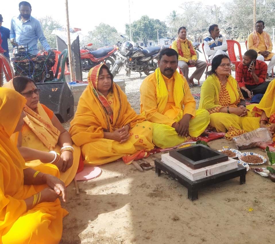 रूपौली. उच्च विद्यालय टीकापट्टी में रविवार को गायत्री महायज्ञ का भूमि पूजन मुखिया शांति देवी, समाजसेवी कालेश्वर मंडल ने यज्ञ के मुख्य यजमान बनकर किया. 25 फरवरी से 28 फरवरी तक महागायत्री यज्ञ 24 कुंडी होगा. इस यज्ञ में हरिद्वार से पंडित एंव वक्ता आने वाले है. इस यज्ञ को सफल बनाने को लेकर टीकापट्टी ग्रामीण लगातार प्रयास कर रहे हैं. मौके पर मुखिया शांति देवी, कालेश्वर मंडल, सुनीता कुमारी, पुष्पा देवी, रंजना कुमारी, सरिता कुमारी, बबीता कुमारी, सुधा कुमारी, सोनी देवी, समतुला देवी ,शशिकला देवी, ललिता देवी आदि उपस्थित थे.