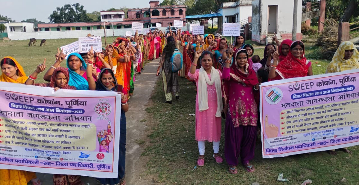 bihar assembly elections news कम मतदान प्रतिशत वाले स्थानों पर जीविका दीदियों ने चलाया सघन मतदाता जागरूकता अभियान