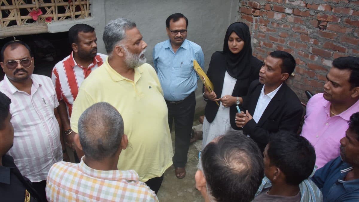 पीड़ित परिवार के घर का निरीक्षण करते प्रमंडलीय आयुक्त राजेश कुमार