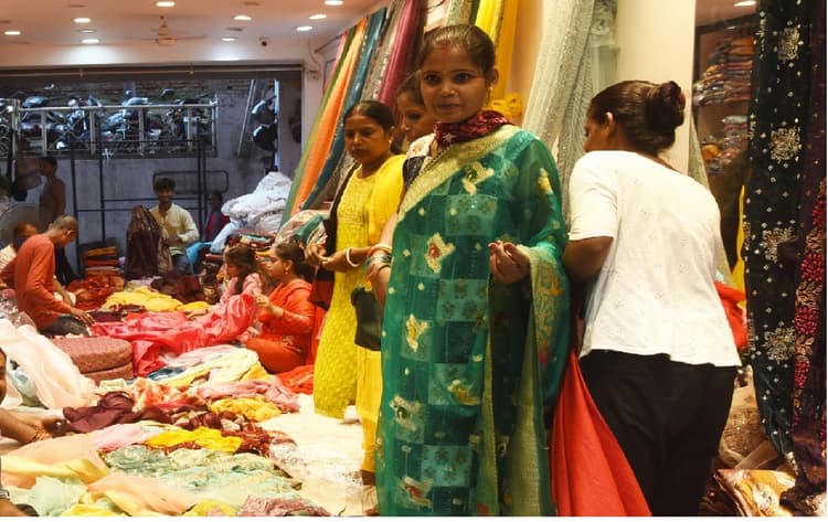 फोटो. 3 पूर्णिया 1- तीज के लिए कपड़े की खरीदारी करती महिलाएं