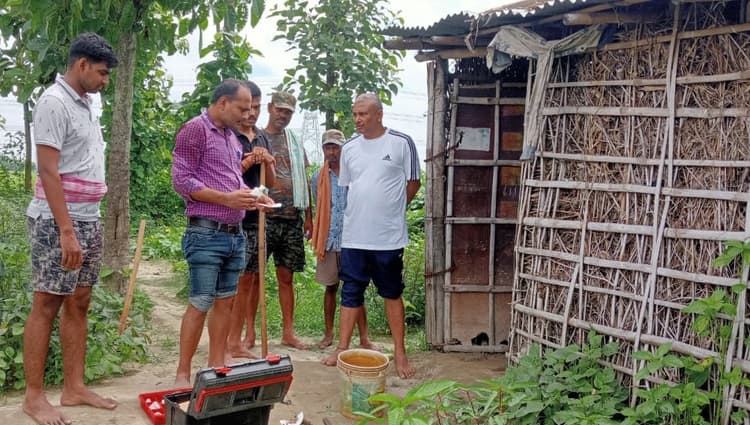 पूर्णिया/हरदा. मरंगा थानाक्षेत्र अंतर्गत मजरा पंचायत के भवानीपुर पासवान टोला में जीजा पर अपने ही साले की कुदाल से हत्या करने का आरोप है. मृतक मिथुन पासवान (30) मजरा पंचायत के भवानीपुर निवासी कृष्णदेव पासवान का पुत्र था. मृतक का जीजा गौरव कुमार पासवान केनगर के काझा का निवासी है, जो अपने ससुराल भवानीपुर में ही रहकर दुकान चलाता था. ग्रामीणों में नाजायज संबंध को लेकर हत्या किये जाने की चर्चा है. घटना के संबंध में थानाध्यक्ष रूपक रंजन सिंह ने बताया कि घटनास्थल की वैज्ञानिक जांच पड़ताल के बाद गौरव कुमार पासवान को मौके पर गिरफ्तार कर लिया गया है. जानकारी के अनुसार, मृतक मिथुन लगभग दो साल बाद बीते 13 जुलाई को पंजाब से अपने घर आया था. शुक्रवार को घर से कुछ दूर स्थित खेत पर साग सब्जी देखने मृतक की पत्नी खेत गयी थी. उसका जीजा भी खेत पर पानी पटवन कर रहा था. जब साला मिथुन वहां पहुंचा तो उसकी पत्नी शाम लगभग 5 बजे घर चली गयी. लगभग आधा घंटा बाद जीजा ने साले की पत्नी को फोन कर जानकारी दी कि मिथुन कामत पर बेहोश पड़ा है. अस्पताल ले जाने के क्रम में मौत हो गयी. ग्रामीणों की सूचना के बाद मरंगा थाना की पुलिस ने घटनास्थल पर पहुंच कर जांच पड़ताल की. मौके पर एफएसएल की टीम भी पहुंची. पुलिस ने शव को कब्जे में लेकर पोस्टमार्टम के लिए राजकीय मेडिकल कॉलेज अस्पताल भेज दिया. फोटो. 20 पूर्णिया 15, 16- घटना की जांच पड़ताल करते एफएसएल की टीम