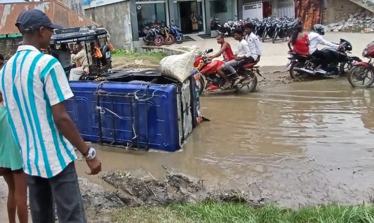 केनगर. बहोरा पंचायत अंतर्गत वार्ड संख्या-18 में टीवीएस एवं होंडा मोटर्स शो रुम के आगे मसुरिया गांव में चम्पानगर से कचहरी बलुआ जानेवाली सड़क पर गड्ढा हो गया है जिसमें जलजमाव की समस्या उत्पन्न हो गई है. सेवानिवृत्त एसबीआई शाखा प्रबंधक जगदीश प्र. यादव,कन्हैया लाल यादव, रमण यादव,ललन यादव आदि ने बताया कि टूटे जलजमाव सड़क पर लोगों को पैदल चलना भी मुश्किल हो गया है. ने जिला प्रशासन से सड़क जीर्णोद्धार के साथ जल निकासी की भी गुहार लगायी है.