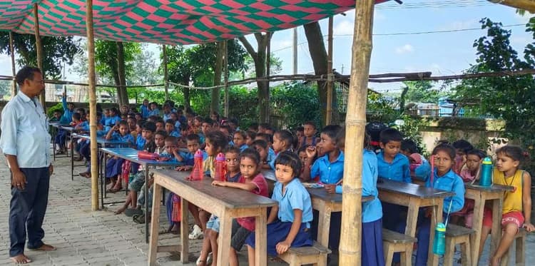 जानकीनगर. जानकीनगर के चांदपुर भंगहा पंचायत के प्राथमिक विद्यालय ठाकुरपट्टी में पठन-पाठन करने वाले छात्र-छात्राएं खुले आसमान के नीचे टेंट में पढ़ाई करने को मजबूर हैं, लेकिन इसका देखनहार कोई नहीं है. इसके कारण पठन-पाठन करने वाले छात्र-छात्राओं का भविष्य भगवान भरोसे है. प्रभारी प्रधानाध्यापक अमित कुमार ने बताया कि प्राथमिक विद्यालय ठाकुरपट्टी की स्थापना वर्ष 2001 में हुई थी. वर्तमान में कुल 165 छात्र-छात्राएं नामांकित है. परंतु भवन के अभाव में खुले आसमान के नीचे टेंट लगाकर पठन-पाठन करना पड़ता है. बरसात के मौसम में आंधी-तूफान आने पर छात्र-छात्राओं को सिर छुपाने के लिए जगह नहीं तक नहीं मिलती है. भवन निर्माण कराने के लिए कई बार विभागीय अधिकारियों को लिखित एवं मौखिक अवगत कराया गया है. स्थानीय ग्रामीणों ने बताया कि लगातार आवेदन देकर भवन निर्माण कराने की मांग की गयी परंतु किसी ने परवाह नहीं है. इस बावत- प्रखंड शिक्षा पदाधिकारी बनमनखी रेखा कुमारी ने बताया कि भवन निर्माण के लिए विभाग को पत्र भेजा गया है. वहीं प्राथमिक विद्यालय ठाकुरपट्टी पहुंचे सांसद राजेश रंजन उर्फ पप्पू यादव ने जिला शिक्षा पदाधिकारी पूर्णिया से दूरभाष पर बातचीत कर अविलंब जमीनदाता से जमीन रजिस्ट्री कराकर भवन निर्माण कराने का आग्रह किया.