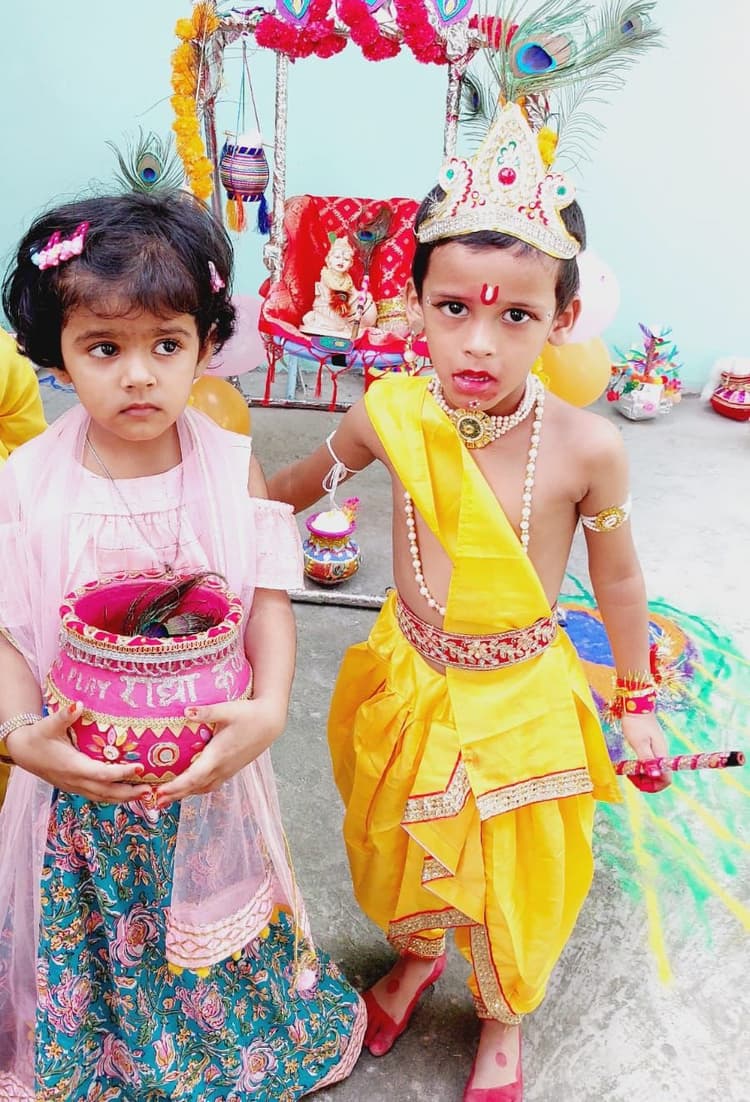 पूर्णिया. श्री कृष्ण जन्माष्टमी के उत्सव को डिस्कवरी पब्लिक विद्यालय के बच्चों द्वारा मनमोहक तरीके से प्रस्तुत किया गया. इस अवसर पर प्ले नर्सरी के बच्चे राधा तथा कृष्ण बन कर विद्यालय आये थे. सुंदर बांसुरी तथा सजे हुए मटके के साथ आये बच्चे बिल्कुल बालगोपाल और राधारानी के मानिंद दिख रहे थे. बच्चों ने इस अवसर पर सुंदर नृत्य तथा गायन प्रस्तुत किया. बच्चों तथा शिक्षकों द्वारा कृष्ण के माखन प्रेम को दर्शाने के लिए मटकी फोड़ने का भी आयोजन किया गया. भगवान कृष्ण के जन्म उत्सव को सभी ने बड़े हर्ष और उल्लास के साथ मनाया. इस अवसर पर विद्यालय के निदेशक राजेश सिन्हा तथा प्रधानाचार्या अंजली सिंह ने बच्चों तथा शिक्षकों की सराहना करते हुए कहा कि इस प्रकार के प्रयास निरन्तर होते रहना चाहिए ताकि बच्चों का संपूर्ण विकास हो सके. इस प्रकार के कार्यक्रम बच्चों को ऊर्जावान बनाते हैं. इस कार्यक्रम के आयोजन में सभी शिक्षकों का सहयोग रहा. सम्पूर्ण कार्यक्रम को सफल बनाने में मिनाक्षी, पृथा, प्रीति, भावना, शिवांगी, मोनाली, मधु, जयप्रिया, शोभा, श्रेया, शिल्पी, अर्चना, सोनी, गौरव, ऐलन, रोहित और सौरभ का सहयोग रहा. फोटो. 24 पूर्णिया 17,18- राधा और कृष्ण के वेश में विद्यालय के बच्चे.