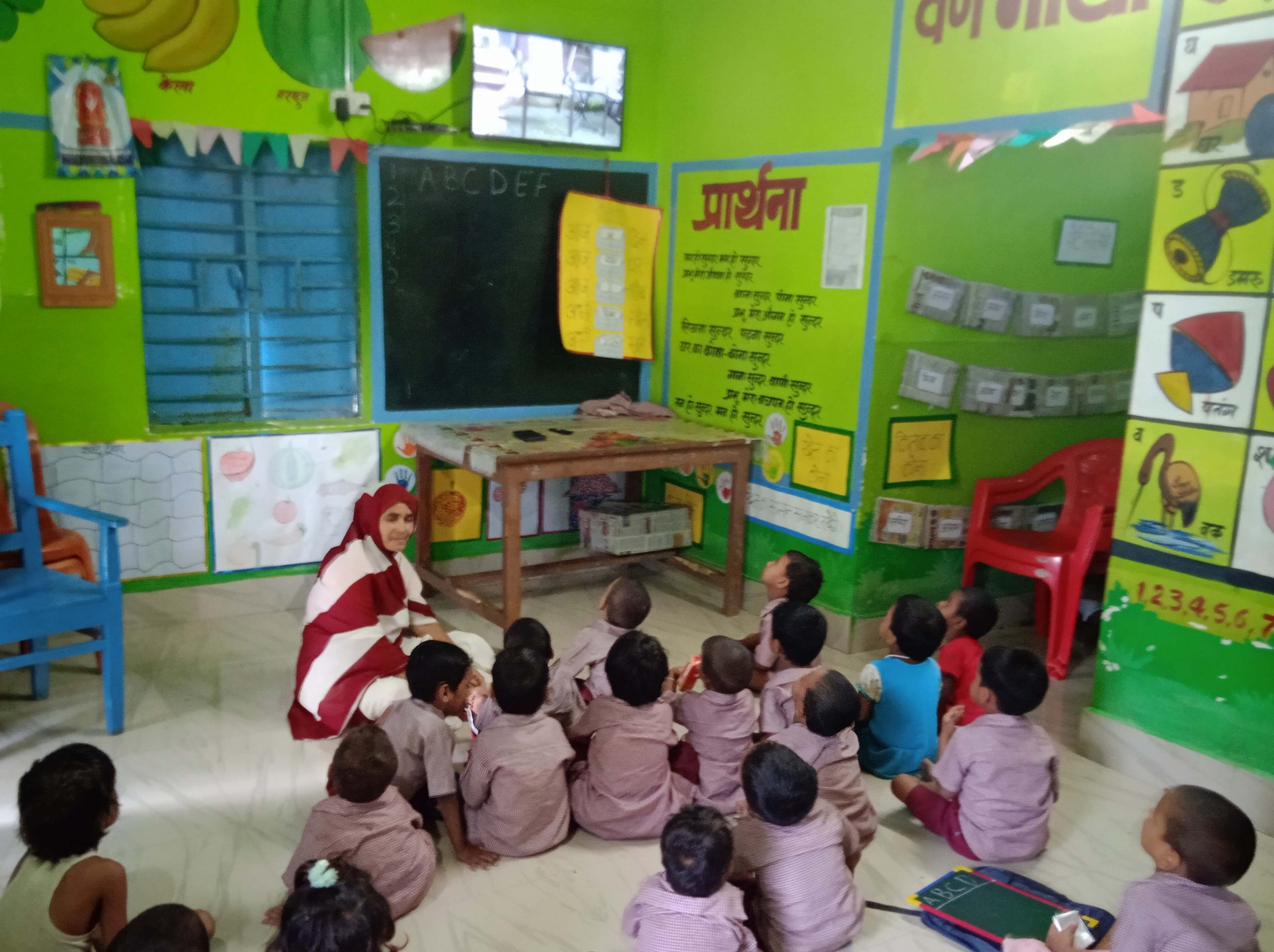 बायसी. प्रखंड के श्रीपुर मल्लाह टोली पंचायत डंगराहा घाट में केंद्र संख्या 42 पर सेविका वाजेदा तबस्सुम टेलीविजन दिखाकर बच्चों को पढ़ा रही हैं .उन्होंने बताया कि टेलीविजन देख कर बच्चे काफी मन लगाकर पढ़ाई करते है. उन्हें टेलीविजन पर छोटा-छोटा गेम दिखाया जाता है . हिंदी एवं अंग्रेजी अक्षरों के प्रथम अक्षर से शुरू होनेवाले वस्तु या जानवरों को दिखाया जाता है , जिससे बच्चे तुरंत समझ जाते हैं और उन्हें तुरंत याद रह जाता है . केंद्र में टेलीविजन रहने के कारण सभी बच्चे प्रतिदिन आंगनबाड़ी पहुंचते हैं और बच्चों को मेन्यू के अनुसार आंगनबाड़ी केंद्र में भोजन दिया जाता है .बच्चों के अभिभावक लूतफुर्र रहमान ने बताया कि छोटे बच्चों को टेलीविजन दिखाकर पढ़ाने से उनका मानसिक विकास होता है और बच्चे कोई भी चीज को जल्दी से समझते हैं. वह केंद्र आने से परहेज नहीं करते हैं .बच्चे प्रतिदिन आंगनबाड़ी केंद्र आते हैं . बाल विकास प्रखंड परियोजना पदाधिकारी उषा किरण ने बताया कि प्रखंड के दो आंगनबाड़ी केंद्रों में टेलीविजन दी गयी है . टेलीविजन देखकर बच्चों को पढ़ाई करना अच्छा लगता है .इससे बच्चे जल्दी समझते भी हैं . आंगनबाड़ी की अच्छी व्यवस्था को देखकर रोशन अली , मोहम्मद अजहर, अकबर अली , अजीजूल रहमान एवं शकील अहमद समेत बच्चों के सभी अभिभावको ने खुशी जाहिर की है . फोटो. 4 पूर्णिया 22- बच्चों को टेलीविजन पर पढ़ा रही सेविका