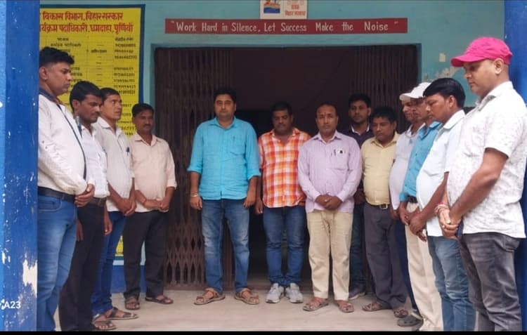 धमदाहा. शुक्रवार को धमदाहा प्रखंड मुख्यालय स्थित मनरेगा भवन में कनीय अभियन्ता रोहित कुमार झा की अध्यक्षता में शोकसभा में बीकोठी प्रखंड के मनरेगा में कार्यरत रोजगार सेवक अशोक कुमार मंडल के निधन पर श्रद्धांजलि दी गयी. कनीय अभियंता रोहित कुमार झा ने कहा कि रोजगार सेवक अशोक कुमार मंडल के निधन पर हम सभी मनरेगा परिवार काफी दुख व्यक्त करते हैं. मौके पर लेखापाल प्रवीण कुमार, चन्द्रकान्त शशि, विकास कुमार, दयाशंकर गुप्ता, विकास कुमार, मनोज कुमार, रमेश कुमार, रवि कुमार शर्मा, राजकिशोर कुमार, बिजेंद्र कुमार यादव, भरत लाल भारती, शिव कुमार सिंह, सुनील कुमार भगत सहित सभी कर्मी उपस्थित थे. फोटो. 4 पूर्णिया 22-शोक सभा में शामिल कर्मी