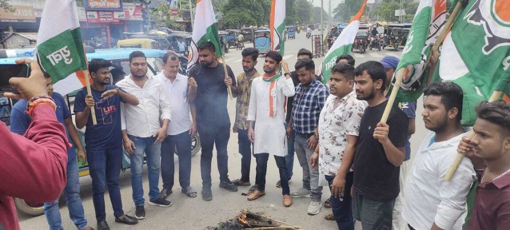कांग्रेस कार्यकर्ताओं ने किया प्रदर्शन, फूंका पुतला