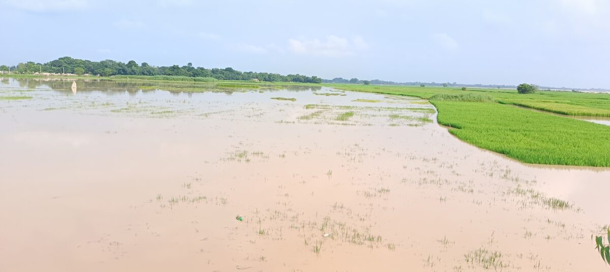 लगातार बारिश से बैसा के निचले इलाकों में फैला पानी, डूबी धान की फसलें