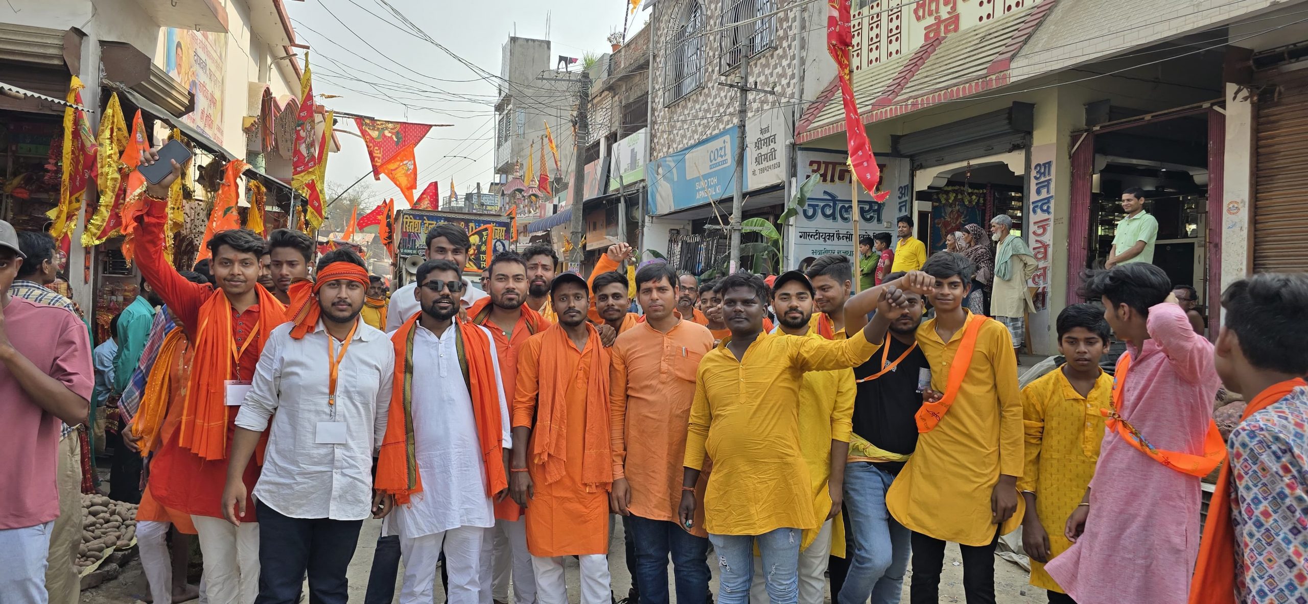 भवानीपुर. श्री राम सेवा संघ भवानीपुर के अध्यक्ष आलोक कुमार उर्फ गोलू के नेतृत्व में सार्वजनिक शिव महावीर मंदिर से रामनवमी शोभायात्रा निकाली गयी. शोभायात्रा में रामभक्तों ने जय श्रीराम के नारे लगाये. सार्वजनिक शिव महावीर मंदिर से निकाली भव्य शोभा यात्रा बजरंगबली चौक, यादव टोला, थाना चौक, बस स्टैंड, दुर्गापुर चौक, भवन देवी मंदिर एवं मुख्य बाजार होते हुए सार्वजनिक शिव महावीर मंदिर में समाप्त हुई. फोटो 8 पूर्णिया 23- शोभायात्रा में शामिल राम भक्त.