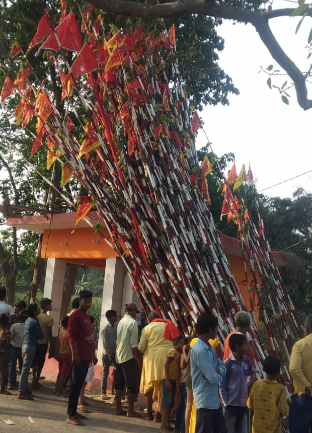 प्रतिनिधि, बीकोठी. बड़हरा-धमदाहा मुख्यमार्ग में कबूतरा स्थान से पूर्व दिशा भविशचंद्र बाबा स्थान में रामनवमी पर श्रद्धा का सैलाब उमड़ पड़ा. यहां ध्वज चढ़ाने सैकड़ों श्रद्धालु उमड़ पड़े. पूरा मंदिर ध्वज से ढक गया. मंदिर के संबंध में 67 वर्षीय बुजुर्ग सरयुग मंडल, 74 वर्षीय बुजुर्ग कपूरचंद दास ने बताया कि भविशचंद्र बाबा के मंदिर में जो भी कोई मन्नत लेकर आते हैं उनकी मन्नत जरूर पूरी होती है. मन्नत पूरी होने के बाद लोग यहां रामनवमी पर ध्वज चढ़ाते हैं.