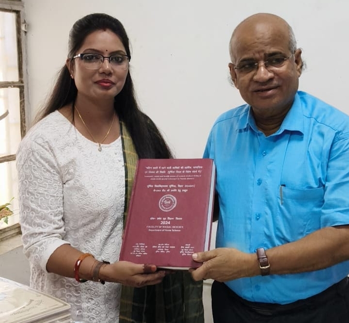 प्रतिनिधि, अमौर. पूर्णिया विश्वविद्यालय परिसर में समारोह में डॉ दीपा भारती को सम्मानित किया गया. विश्व विद्यालय परिवार की ओर से उनके पति धीरज कुमार को भी सम्मानित किया गया. इस अवसर पर बाह्य पर्यवेक्षिका पटना विश्वविद्यालय व पूर्णिया विश्वविद्यालय पूर्णिया के सभी विभागों के विभागाअध्यक्ष, प्रोफेसर, असिस्टेंट प्रोफेसर व रिसचर्स उपस्थित रहे. समारोह को संबोधित करते हुए उपस्थित वक्ताओं ने कहा कि एक महिला जब शादी कर ससुराल चली जाती है तो उसकी शिक्षा रूपी उड़ान की रफ़्तार जैसे रुक जाती है क्योंकि इसकी डोर पति सहित ससुराल वालो के हाथों में चली जाती है. ऐसे में ससुराल वालों द्वारा यदि इस डोर को समुचित दिशा के साथ गति प्रदान किया जाता रहे तो एक महिला भी पुरुषों की भांति ऊंची शिक्षा प्राप्त कर सकती है जिसका प्रमाण डॉ दीपा भारती है जिन्हें पति के साथ साथ-साथ ससुर श्रवण साह व सास गायत्री देवी का भरपूर सहयोग मिला जिसके कारण आज उसे यह गौरव मिला रहा है. डॉ दीपा भारती ने बताया कि उनके शोध का विषय है “मलिन बस्ती में रहने वाली महिला श्रमिकों की आर्थिक, सामाजिक एवं स्वास्थ्य की स्थिति”. अपने शोध के लिए सीमांचल के ही अत्यंत पिछडे क्षेत्र जिनमें अमौर, बैसा, के नगर जैसे प्रखंड के अन्तर्गत आने वाले ग्राम पंचायतों की महिला श्रमिकों का चयन किया. फ़ोटो परिचय–1 पूर्णिया 18- सम्मान प्राप्त करती डॉ दीपा भारती.