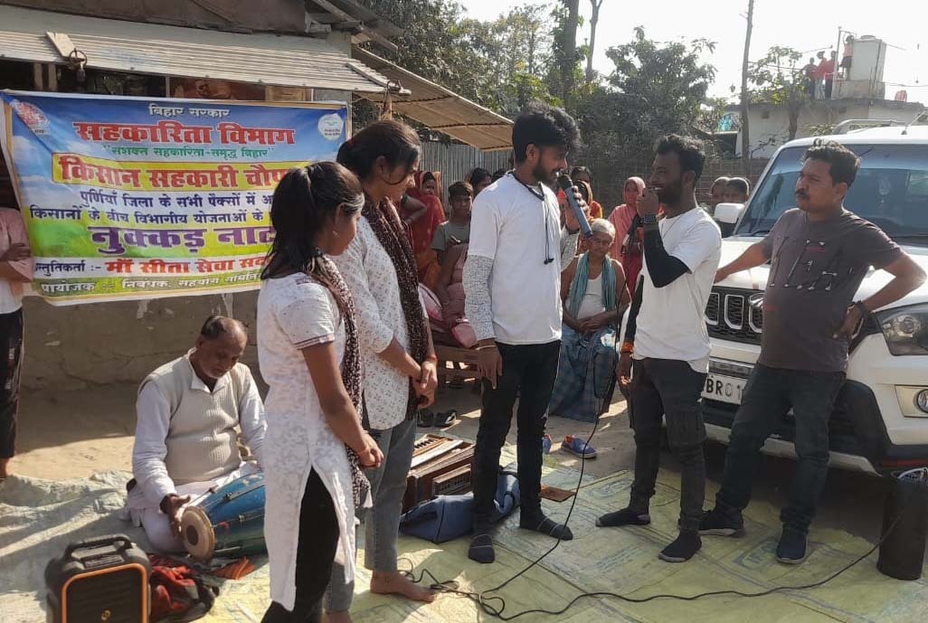 प्रतिनिधि, हरदा. के.नगर प्रखंड के सतकोदरिया व सहरा पैक्स में सहकारिता विभाग के निर्देश पर किसान चौपाल सह नुक्कड़ नाटक आयोजित कर किसानों को जागरूक किया गया .सतकोदरिया पैक्स अध्यक्ष संतोष कुमार सिंह एवं सहरा पैक्स अध्यक्ष बीरबल यादव की अध्यक्षता में किसानों ने सहकारी योजनाओं की जानकारी ली. टीम के श्वेता स्वराज के साथ सहयोगी सदस्यों ने नुक्कड़ नाटक के माध्यम से खाद, बीज सब्सिडी, उर्वरक यंत्रों आदि के बारे में जानकारी दी. मौके पर पैक्स अध्यक्ष संतोष कुमार सिंह, बीरबल यादव, तारकेश्वर यादव, विभूति गोस्वामी, सुभाष यादव, रवींद्र कुमार, धर्मेंद्र पोद्दार, प्रीतम कुमार, रामकृष्ण पासवान, मिथिलेश यादव आदि मौजूद थे.