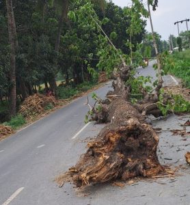 सड़क पर गिरे पेड़ से दुर्घटना की आशंका