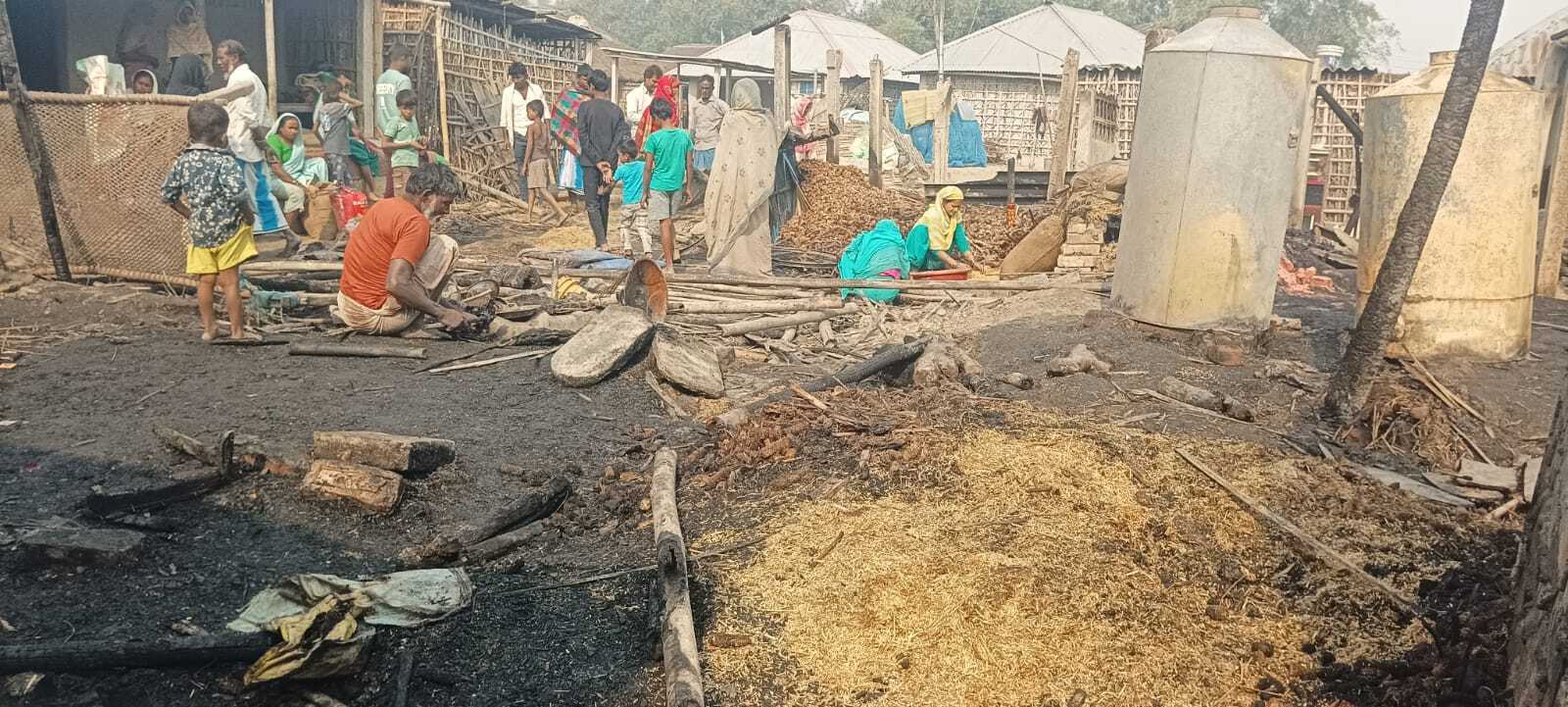 केनगर. चम्पानगर थानाक्षेत्र के गोकुलपुर पंचायत के वार्ड 3 हाट धनाहरा गांव में शनिवार की देर रात्रि अचानक लगी आग से तीन लोगों के पांच घर जलकर राख हो गये. इस अगलगी में लगभग छह लाख रुपए की संपति जलकर राख हो गयी. ग्रामीणों की मदद से आग पर काबू पाया जा सका. अग्निपीड़ित सोमानी, फते मोहम्मद, मोहम्मद सगीर ने बताया कि बीती रात्रि गरीब 12 बजे अचानक एक घर से आग उठी. देखते हीं देखते पांच घर जलकर राख हो गये. घर में रखे अनाज, कपड़ा, फर्नीचर आदि जलकर राख हो गये. घटना की जांच करने आए राजस्व कर्मचारी सुधीर कुमार ने बताया तीन लोगों का घर एवं घर में रखा मान जला है जिसकी जांच रिपोर्ट दे दी गई है. सीओ दिवाकर कुमार ने बताया कि नियमानुसार अग्निपीड़ितों को सरकारी सहायता दी जाएगी.
