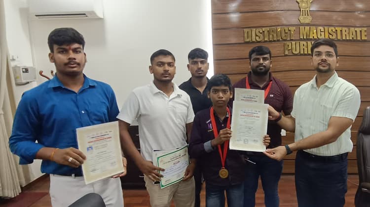 पूर्णिया. पटना में आयोजित चौथी बिहार स्टेट गट्टा कुश्ती चैंपियनशिप में पूर्णिया के पांच पहलवानों ने शानदार प्रदर्शन करते हुए कुल पांच पदक जीत कर जिले का नाम रोशन किया है. इस प्रतियोगिता में अंडर-30 वर्ग में अबरार अहमद ने पहला गोल्ड मेडल जीता.अंडर-14 में नूर हसन बाबू ने भी स्वर्ण पदक पर कब्जा किया. वहीं अंडर-25 वर्ग में अमन भारती और शरेयार ने रजत पदक (सिल्वर) जीते. अंडर-17 वर्ग में तनिश कुमार सिंह ने कांस्य पदक (ब्रॉन्ज) जीतकर जिले को गौरवान्वित किया. जिला पदाधिकारी ने सभी खिलाड़ियों को और बेहतर प्रदर्शन करने के लिए जिला खेल भवन सह व्यायामशाला में उपलब्ध कुश्ती मैट का उपयोग करने का सुझाव दिया. जिला पदाधिकारी ने सभी खिलाड़ियों को उनके उज्ज्वल भविष्य की कामना करते हुए आगे बढ़ते हुए राष्ट्रीय और अंतराष्ट्रीय स्तर पर अपना एवं जिले का नाम रौशन करने की शुभकामनाएं दी.