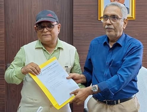 पूर्णिया. पूर्णिया विवि के पूर्व कुलसचिव डॉ. घनश्याम राय को पूर्णिया विवि ने अनापत्ति प्रमाण पत्र दे दिया है. डॉ. घनश्याम राय वर्तमान में यूआर कॉलेज रोसड़ा, समस्तीपुर के प्रभारी प्रधानाचार्य के पद पर पदस्थापित हैं. राजभवन के निर्देश पर बीते 21 मार्च को डॉ. राय को कुलसचिव पद से विरमित कर दिया गया था. पूर्व कुलसचिव डॉ. घनश्याम राय ने बताया कि उन्होंने कुलपति प्रो. पवन कुमार झा से शिष्टाचार मुलाकात की. इस क्रम में कुलपति ने उन्हें अनापत्ति प्रमाण पत्र एवं अद्यतन सेवा पुस्तिका प्रदान की. फोटो. 25 पूर्णिया 10 परिचय- कुलपति से एनओसी लेते पूर्व कुलसचिव डा. घनश्याम राय