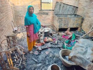 जलालगढ़. जलालगढ़ प्रखंड के हांसी बेगमपुर पंचायत के जिंदापुर वार्ड संख्या 14 में बुधवार की रात को आग लगने से आग लगने से चार परिवारों के घर पूरी तरह जल कर राख हो गये. पीड़ित परिवार के आवासीय भवन, घर में रहे सारे सामान, वस्त्र, बर्तन, खाद्य सामग्री आदि पूरी तरह जल गये. आग में लगभग 6 लाख का नुकसान बताया गया. वहीं आग लगने के सही कारणों का पता नहीं चल सका. स्थानीय लोगों ने बताया कि आग पर काबू पाने का काफी प्रयास किया गया. मौके पर जलालगढ़ थाना के दमकल ने पहुंच कर आग पर काबू पाया. पीड़ित परिवारों में सफीना पति मो असगर, अजमेरा खातून पति मो अनवर, नगमा खातून पति मो जुल्फिकार, अब्दुल मन्नान पति शेख सफेदुल के घर का सारा सामान जलकर राख हो गया. आग लगने की सूचना मिलते ही अंचल अधिकारी मो सबीहुल हसन ने राजस्व कर्मचारी श्रवण कुमार से जांच करायी. पीड़ित परिवारों को अंचलाधिकारी द्वारा प्रत्येक परिवार को तात्कालिक आपदा राहत सामग्री उपलब्ध करायी गयी. बारह हजार का आपदा का चेक दिया गया.