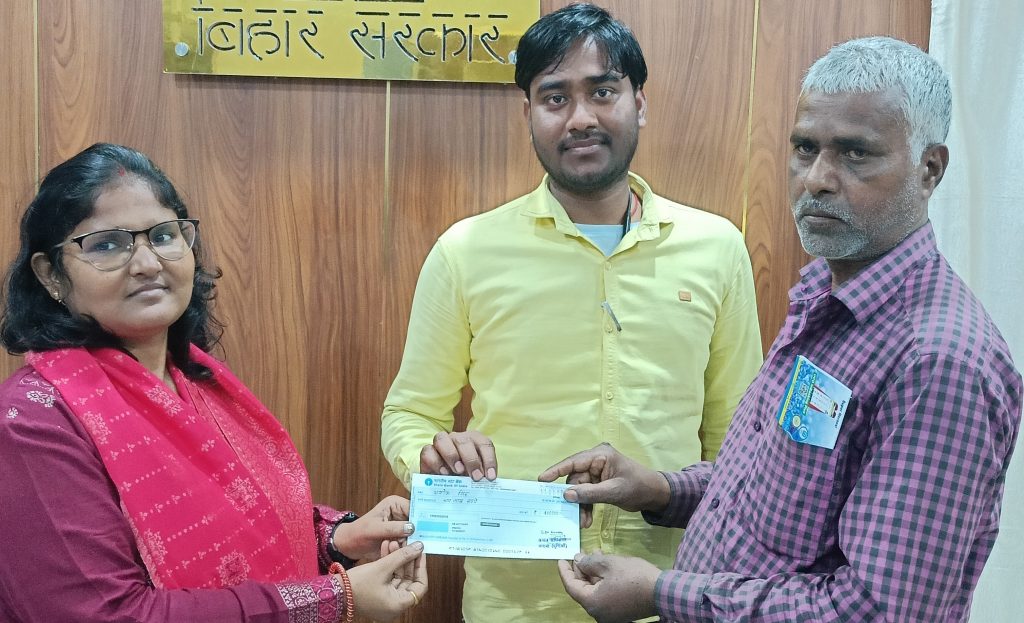 कसबा.कसबा की अंचलाधिकारी रीता कुमारी ने शनिवार को अंचल कार्यालय में अंचल क्षेत्र के मृतक के परिजन को चार लाख रुपये का चेक प्रदान किया. उन्होंने नगर परिषद क्षेत्र के राधानगर गांव के मृतक सुमन कुमार सिंह के पिता अशोक कुमार सिंह को चार लाख रुपये का चेक प्रदान किया. जानकारी देते हुए अंचलाधिकारी रीता कुमारी ने बताया कि राधानगर निवासी अशोक कुमार सिंह के पुत्र सुमन कुमार सिंह की कसबा थानाक्षेत्र के एनएच 57 पर सड़क हादसे में मौत हो गई थी. उसके परिजन को शनिवार को अंचल कार्यालय में सरकारी मुआवजा राशि 4 लाख का चेक प्रदान किया गया. मौके पर राजस्व कर्मचारी विक्रम कुमार रजक, राजीव कुमार आदि मौजूद थे.