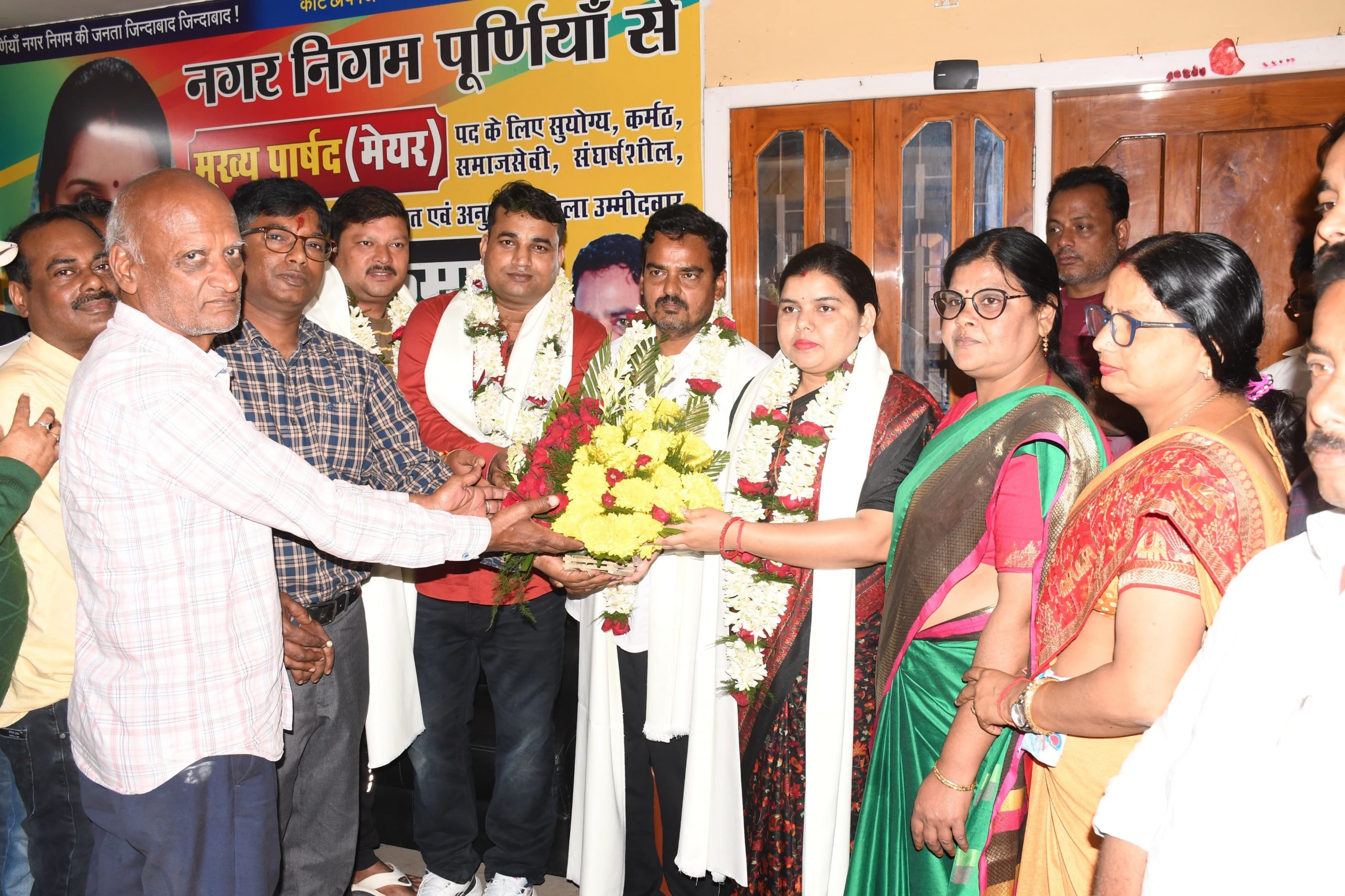 – भट्ठा बाजार के व्यवासियों ने महापौर को किया सम्मानित पूर्णिया .भट्ठा बाजार में टीओपी निर्माण का रास्ता साफ होने पर आज भट्ठा बाजार के दुकानदारों एवं स्थानीय लोगों ने महापौर विभा कुमारी के शिवनगर खुश्कीबाग स्थित आवास पर पहुंचकर उनका आभार व्यक्त किया. दुकानदारों एवं स्थानीय लोगों ने महापौर को बुके व शाॅल देकर सम्मानित किया. बता दें कि तत्काल लखन चौक स्थित पुलिस ठाकुरबाड़ी में टीओपी चल रहा है. टीपीओपी निर्माण का आदेश भी दिया जा चुका है परंतु जमीन की अनुपलब्धता इसमें आड़े आ रही थी. अब जमीन उपलब्ध होने के बाद निर्माण कार्य का रास्ता साफ हो गया है. इस संबंध में महापौर विभा कुमारी ने बताया कि भट्ठा बाजार के लखन चौक पर स्थित पुलिस ठाकुरबाड़ी में तत्काल टीओपी संचालित था. जमीन उपलब्ध नहीं रहने के कारण टीओपी का निर्माण कार्य रूका हुआ था. नगर निगम द्वारा रजनी चौक और लखन चौक के बीच टीओपी निर्माण के लिए जमीन उपलब्ध करा दी गई है. नगर निगम के द्वारा स्थल की जांच अमीन द्वारा करवायी गई. स्थल निरीक्षण के बाद पूर्णिया नगरपालिका के सर्वे खतियान मौजा माधोपाड़ा में रकवा 784 वर्गफीट टीओपी निर्माण के लिए दे दी गई है. उक्त जमीन का नगर निगम द्वारा एनओसी भी दे दिया गया है. नगर निगम द्वारा एनओसी की सूचना के बाद दिए जाने के बाद दुकानदार स्थानीय वार्ड पार्षदों के साथ शनिवार को महापौर के आवास पर पहुंचकर महापौर एवं समाजसेवी जितेंद्र यादव के प्रति कृतज्ञता जाहिर की. महापौर विभा कुमारी ने आरक्षी अधीक्षक के प्रति आभार जताया. . वहीं महापौर आवास पर पहुंचे दुकानदार गुड्डू , रितेश मोदी, मनोज साह, अनिल , गणेश साह, अभिषेक कुमार, उमेश यादव, मुन्ना कुमार, गोपाल चंद्र दास, दीपक राज, सुभाष जी, कुमार मनोज, आशीष जैन, शिवशंकर सिंहा, रीमा कुमार साह, मिट्ठू सरकार, राजेश अरोरा, सन्नी साह, गौरव आदि ने महापौर विभा कुमारी ,समाजसेवी जितेंद्र यादव एवं आरक्षी अधीक्षक के प्रति साधुवाद व्यक्त किया. मौके पर मुख्य रूप से वार्ड पार्षद नवल जायसवाल, अंजनी साह, स्वपन घोष, वार्ड पार्षद प्रतिनिधि कुणाल किशोर, राजीव राय, बहादुर यादव आदि मौजूद थे.