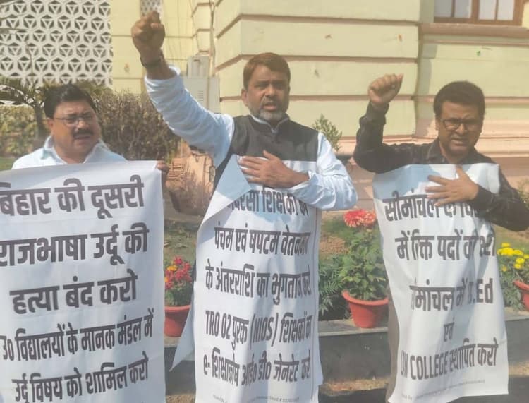 – अमौर विधायक समेत एमआइएम के विधायकों ने विधानसभा सत्र के दौरान मांगों को लेकर किया प्रदर्शन प्रतिनिधि,अमौर. बिहार विधानसभा के बजट सत्र के दौरान गुरुवार को एआईएमआईएम के प्रदेश अध्यक्ष सह अमौर विधायक अख्तरुल ईमान के नेतृत्व में उनकी पार्टी के सभी विधायक बहादुरगंज विधायक तौसीफ आलम, जोकीहाट विधायक मुर्शीद आलम, कोचाधामन विधायक सरवर अलम ने क्षेत्र की ज्वलंत समस्याओं और भाषाई अधिकारों को लेकर जोरदार प्रदर्शन किया.प्रदर्शन के दौरान अमौर विधायक अख्तरुल ईमान ने शिक्षा, रोजगार और उर्दू भाषा के संरक्षण पर जोर दिया. कहा कि बिहार की दूसरी आधिकारिक भाषा होने के बावजूद उर्दू की अनदेखी की जा रही है.उन्होंने मांग की कि प्लस-टू विद्यालयों के मानक मंडल में उर्दू विषय को अनिवार्य रूप से शामिल किया जाए.अलीगढ़ मुस्लिम यूनिवर्सिटी के किशनगंज सेंटर को लेकर भी मांग तेज हुई. केंद्र सरकार से राशि दिलाने हेतु राज्य सरकार को तत्काल प्रभावी प्रस्ताव भेजने का आग्रह किया गया. सीमांचल के पिछड़ेपन को दूर करने के लिए वहां बीएड और लॉ कॉलेज स्थापित करने की मांग की गई. साथ ही, क्षेत्र के विद्यालयों में खाली पड़े शिक्षकों के पदों को शीघ्र भरने की अपील की . अन्य प्रमुख मांगें भी जोरदार तरीके से रखी गयीं.
