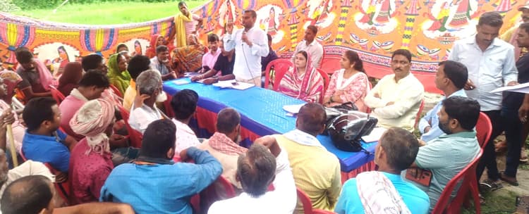 प्रतिनिधि हरदा. केनगर प्रखंड के गोआसी पंचायत भवन में मुखिया अफरोज आलम एवं रहुआ पंचायत भवन में मुखिया सूफिया परवीन की अध्यक्षता में जमीन सर्वे को लेकर विशेष सर्वेक्षण सभा की गयी. ग्रामसभा में उपस्थित विशेष सर्वेक्षक कानूनगो अरूण कुमार ने किसानों को कहा कि अपनी जमीन का सम्पूर्ण विवरण के साथ सर्वे फार्म भर कर मौजा सहित अमीन के पास जमा करें. जांच कर सभी लोगों को जमीन का स्वामित्व बनाया जाएगा. जमीन संबंधित विस्तारपूर्वक किसानों को बताया गया. इस ग्रामसभा में सरपंच प्रतिनिधि नजरूल हक, अमीन गणेश गणपत, सतीश कुमार, शेखर सुमन, समिति मुमताज आलम, साहिल फिरोज वार्ड सदस्य विपिण कुमार, राजीव कुमार, रंजीत कुमार सहित दर्जनों किसान उपस्थित थे. फोटो -24 पूर्णिया 14- रहुआ पंचायत भवन में विशेष सर्वेक्षण पर किसानों को जानकारी देते पदाधिकारी.