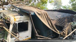 गढ़बनैली में घर में घुसा तेज रफ्तार हाइवा, बाल बाल बचे लोग