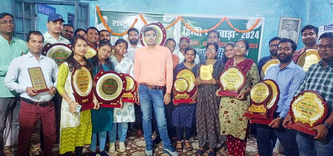 पूर्णिया. जिले के भारतीय खाद्य निगम मंडल कार्यालय में हिंदी पखवाड़ा को लेकर कई प्रकार के कार्यक्रमों का आयोजन किया गया. इन आयोजनों में मुख्य रूप से अनेक प्रकार की प्रतियोगिताएं शामिल रहीं जिसमें विभाग के कर्मियों ने बढ़ चढ़ कर हिस्सा लिया. हिंदी अनुवाद प्रतियोगिता में कुमारी प्रिया प्रथम, राज सिंह द्वितीय, स्निग्धा पटोवारी तृतीय स्थान पर रहे जबकि राजभाषा ज्ञान एवं व्याकरण प्रतियोगिता में रुमा भारती प्रथम, मौसमी बर्मन द्वितीय एवं ललित कुमार यादव तृतीय स्थान पर रहे. टंकण प्रतियोगिता के तहत प्रथम पुरस्कार मिला राकेश कुमार झा को जबकि विमल प्रकाश को द्वितीय एवं महादेव रॉय को तृतीय स्थान का पुरस्कार मिला. वहीं काव्य प्रतियोगिता में सर्वेश कुमार प्रथम, जिज्ञासा द्वितीय एवं अमिता कुजूर तृतीय स्थान पर रहे, पत्र लेखन प्रतियोगिता में राम कुमार यादव को प्रथम स्थान मिला जबकि राहुल कुमार दास द्वितीय तथा विवेक कुमार तृतीय स्थान पर रहे. सभी विजेता प्रतिभागियों को हिंदी पखवाड़ा समापन के दिन भारतीय खाद्य निगम मंडल प्रबंधक संत नवनीत राणा ने पुरस्कृत किया. हिंदी अधिकारी संगीता कुमारी ने बताया कि हिंदी पखवाड़े के साथ साथ पोषण माह का भी आज समापन किया गया है. प्रत्येक वर्ष मंडल कार्यालय में हिंदी पखवाड़े का आयोजन किया जाता है. विभिन्न कार्यक्रमों के माध्यम से हिंदी में लोगों की अभिरुचि बढाने के लिए प्रतियोगिताएं आयोजित की जाती हैं जिसमें सभी उत्साहपूर्वक भाग लेते हैं. इस बार भी आयोजन में कर्मियों ने बढ़ चढ़कर हिस्सा लिया. इस मौके पर जिला भंडारण प्रबंधक आनंद कुमार ने जानकारी देते हुए कहा कि विगत 14 सितम्बर से शुरू हुए हिंदी पखवाड़े का आज समापन किया गया है इसमें हिंदी के प्रति लोगों में रूचि बढ़े इसे लेकर प्रतियोगिताएं आयोजित की गयी. लोगों ने प्रण लिया कि वे हिंदी भाषा का अधिक से अधिक प्रयोग करेंगे और उसके उत्थान की दिशा में कार्य करेंगे. फोटो – 29 पूर्णिया 3- हिंदी पखवाड़े के समापन पर कर्मियों के साथ एफसीआई मंडल प्रबंधक