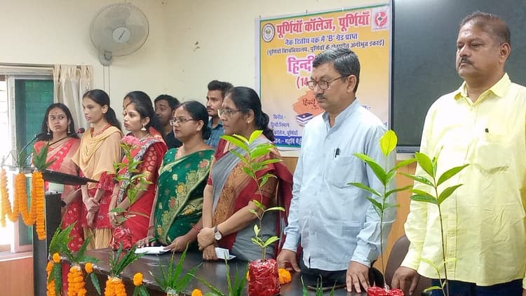 – पूर्णिया कॉलेज में वर्तमान परिदृश्य में हिंदी विषय पर विचार गोष्ठी पूर्णिया. हिंदी दिवस पर पूर्णिया कॉलेज के हिंदी विभाग की ओर से वर्तमान परिदृश्य में हिंदी विषय पर विचार गोष्ठी की अध्यक्षता करते हुए प्रधानाचार्य प्रो. डॉ. शंभुलाल वर्मा ने कहा कि हिंदी भाषा हमारी संवेदना एवं चिंतन की भाषा है. हिन्दी भाषा में उपनिवेशवाद के कारण इसके शब्दकोश में अंग्रेजी के शब्दों का समावेश हो गया है. हिंदी को लोकप्रिय बनाने के लिए साहित्यकारों की भूमिका का उल्लेख करते हुए उन्होंने कहा कि साहित्य में सरल, सुबोध शब्दों का प्रयोग होना चाहिए. उन्होंने छात्रों को प्रेरित करते हुए हिंदी के अतिरिक्त दूसरी भारतीय भाषाओं को भी सीखने की बात कही. हिन्दी विभाग की विभागाध्यक्ष डॉ. अंकिता विश्वकर्मा ने कहा कि हिंदी वर्तमान समय में सबसे अधिक लोकप्रिय एवं विश्व की तीसरी सबसे ज्यादा बोली जाने वाली भाषा है. हिन्दी भाषा 18 बोलियों का सम्मिश्रण है. भाषाओं के व्यवहारिक प्रयोग से वह विकसित और समृद्ध होती है. राष्ट्रीय सेवा योजना के कार्यक्रम समन्वयक डॉ रामदयाल पासवान ने कहा कि विश्व के अनेक देशों में हिंदी की पढ़ाई हो रही है. हिंदी रोजगार की भाषा है. विश्व का हर छठा व्यक्ति भारतीय है. इसलिए श्रमशक्ति की उपलब्धता के लिए पूरा विश्व भारत की ओर देख रहा है.हिंदी का प्रयोग सरकारी कामकाज एवं कार्यालयों में होना चाहिए. पूर्णिया कॉलेज शिक्षक संघ के अध्यक्ष डॉ.सी के मिश्रा ने कहा कि हिंदी भाषा के दैनिक प्रयोग से ही वह समृद्ध होगी,जिससे देश भी समृद्ध होगा. पूर्णियॉ कॉलेज शिक्षक संघ के सचिव प्रो. राकेश ने कहा कि हिंद की पहचान हिंदी से है. हिन्दी को हटा देने से भारत का बाजारवाद ही समाप्त हो जाएगा. हिन्दी भाषा के प्रयोग की बात कहते हुए उन्होंने कहा कि हम संस्कृति को भाषा के माध्यम से ही जान सकते है. पूर्णिया विश्वविद्यालय हिंदी विभाग के सहायक प्राध्यापक डॉ. जितेन्द्र वर्मा ने कहा की भाषा वही जीवंत रहेगी जो रोजगारपरक होगी. इंजीनियरिंग और चिकित्सा की पुस्तकें भी भारतीय भाषा में होनी चाहिए. उर्दू विभाग के विभागाध्यक्ष डॉ. मुजाहिद हुसैन ने कहा कि हमें अपनी भाषा से प्रेम करना चाहिए . हिन्दी भाषा को बचाने के लिए उसके साहित्य से विद्यार्थियों को जोड़ना होगा. साहित्यकार संजय सनातन ने कहा कि हिंदी को समृद्ध करने में भारतीय सिनेमा की महत्वपूर्ण भूमिका है. हमारी भाषा अच्छी होगी तो निश्चित ही रोजगार के अवसर बढ़ेंगे. संस्कृत विभाग की विभागाध्यक्ष डॉ.सविता ओझा ने साहित्य शास्त्र का वर्णन करते हुए कहा कि पाठक तनाव एवं अवसाद से मुक्ति के लिए साहित्य की शरण लेते हैं. उन्होंने नागार्जुन की कविता का वाचन भी किया. कॉलेज परीक्षा नियंत्रक