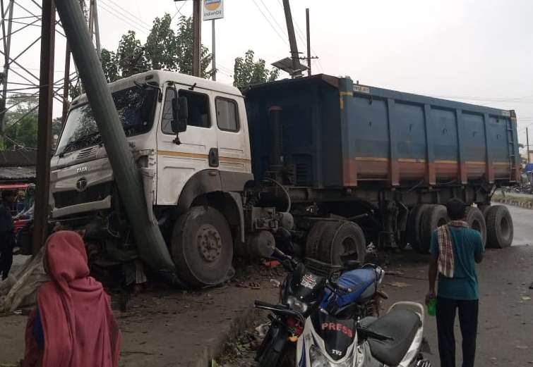 केनगर. केनगर थानाक्षेत्र के केनगर चौक पर शनिवार की सुबह एक अनियंत्रित हाइवा ट्रक सड़क किनारे लगी फल की दुकान को तोडते हुए एक बिजली खंभा में जा टकराया. घटना की सूचना मिलते ही बीडीओ आशीष कुमार तथा थानाध्यक्ष मुन्ना कुमार पटेल घटना स्थल पर पहुंच कर स्थिति का जायजा लिया. हाइवा ट्रक बीच सड़क पर अचानक अनियंत्रित होकर खड़ा हो जाने से सड़क के दोनों ओर दर्जनों छोटे बड़े वाहन से जाम की समस्या उत्पन्न हो गई.जहाँ बड़ी मशक्कत के बाद केनगर थाना पुलिस ने ट्रक को सड़क से कुछ हटा कर आवाजाही को बहाल करवाया. मालूम हो की डब्लू बी 59 डी 1404 हाइवा ट्रक अनियंत्रित होकर फल एवं सब्जी दुकान में घुसने पर हुई क्षति से फल विक्रेता खुशबू कुमारी एवं सब्जी विक्रेता चांदनी देवी को हजारों का नुकसान पहुंचा है.थानाध्यक्ष मुन्ना कुमार पटेल ने बताया कि फिलहाल ट्रक घटनास्थल पर ही क्षतिग्रस्त अवस्था में खड़ा है. घटना को लेकर किसी व्यक्ति द्बारा लिखित शिकायत करने पर ट्रक को जप्त कर आवश्यक कार्रवाई कर दी जायेगी.
