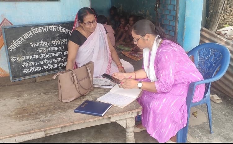 भवानीपुर. सीडीपीओ रेणु कुमारी ने शनिवार को नगर पंचायत भवानीपुर के केंद्र संख्या 87 यादव टोला समेत आधा दर्जन से अधिक आंगनबाड़ी केंंदोंं का निरीक्षण किया. निरीक्षण के दौरान आंगनबाड़ी केंंदोंं पर स्कूल पूर्व शिक्षा प्राप्त कर रहे बच्चों का अवलोकन करने के पश्चात उपस्थित बच्चों एवं सेविका से विशेष जानकारी ली. निर्देश देते हुए कहा कि संवर्धन एप को सेविका को हर हाल में करना है. सभी बच्चों का अपने-अपने आंगनबाड़ी के पोषक क्षेत्र में नामांकन करना अनिवार्य है. गर्भवती, धात्री माता, किशोरी, कुपोषित, अति कुपोषित को मिलने वाली पोषाहार पर विशेष चर्चा की.लाभार्थी के पोषाहार पंजी का भी अवलोकन किया. मुख्यमंत्री कन्या उत्थान योजना, प्रधानमंत्री मातृत्व वंदना योजना पर विशेष ध्यान देने की जरूरत बताया . इसके साथ ही अतिकुपोषित ,कुपोषित बच्चों को चिह्नित करने पर जोर दिया. उन्होंने सेविका बबीता कुमारी को निर्धारित समय पर केंद्र का संचालन और बंद करने का निर्देश दिया. फोटो – 31 पूर्णिया 7- पंजी का अवलोकन करतीं सीडीपीओ रेणु कुमारी.
