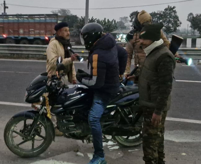 पूर्णिया पूर्व. मुफस्सिल थानाक्षेत्र अंतर्गत मुफस्सिल थाना चौक पर सघन वाहन जांच अभियान संचालित किया गया. अभियान के दौरान दोपहिया से लेकर चारपहिया वाहनों तक की गहन जांच की गई. वाहनों के कागजात, डिक्की एवं संदिग्ध व्यक्तियों की तलाशी ली गई. इस दौरान किसी भी प्रकार की अवैध गतिविधि, शराब कारोबार, असामाजिक प्रवृत्ति के लोगों एवं अन्य संदिग्ध वस्तुओं को लेकर विशेष सतर्कता बरती गई मुफस्सिल थानाध्यक्ष सुदीन राम ने बताया कि वाहन जांच के साथ-साथ वाहन चालकों को यातायात नियमों के पालन के लिए जागरूक भी किया गया. उन्होंने विशेष रूप से दोपहिया वाहन चालकों से हेलमेट पहनकर ही मोटरसाइकिल चलाने की अपील की और सुरक्षित यातायात के महत्व को समझाया. थानाध्यक्ष ने बताया कि यातायात नियमों का पालन न केवल कानून की प्रक्रिया है, बल्कि यह स्वयं की सुरक्षा के लिए भी अत्यंत आवश्यक है. वाहन जांच अभियान में मुफस्सिल थानाध्यक्ष सुदीन राम के नेतृत्व में एएसआई कयूमुद्दीन अंसारी, सिपाही केदार कुमार सहित पुलिस बल के अन्य जवान सक्रिय रूप से मौजूद रहे.